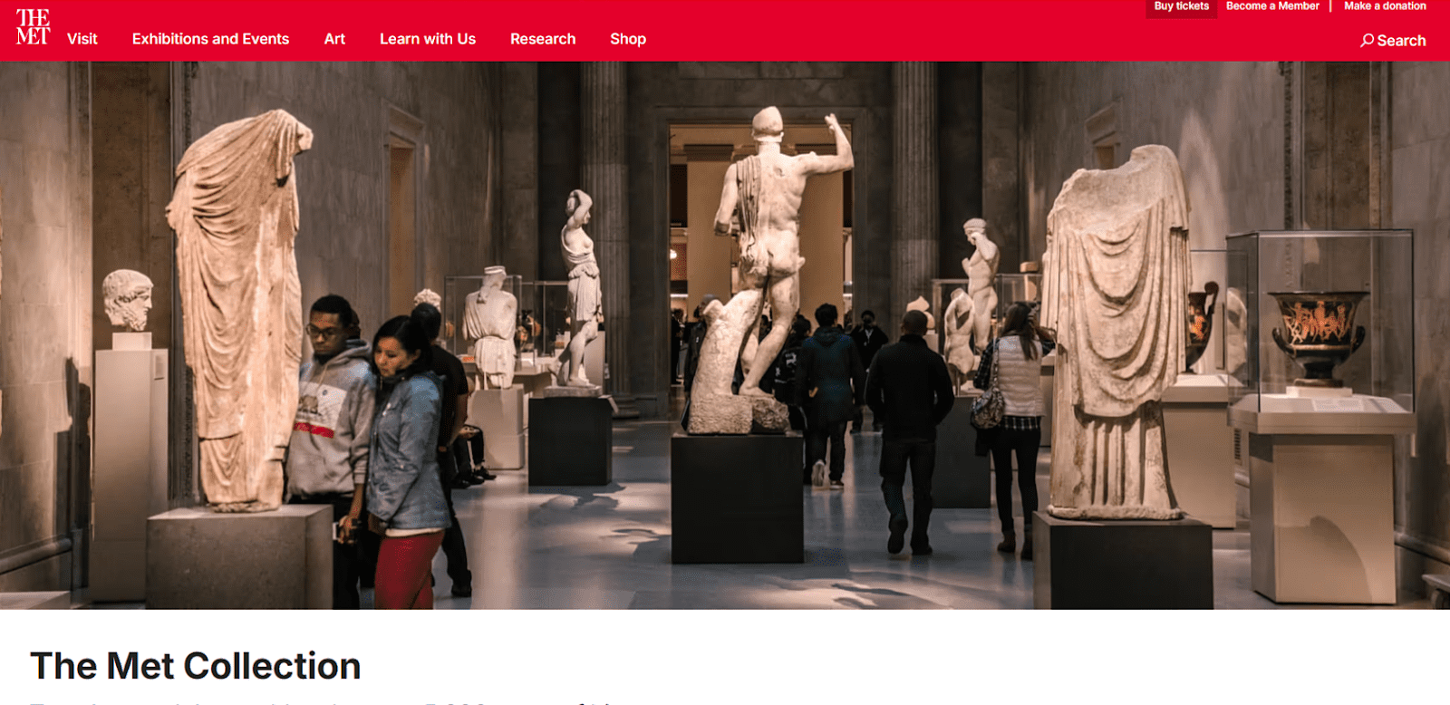 Одним из самых интересных музейных сайтов является сайт нью-йоркского Метрополитена (MET): карта музея, множество научно-популярных статей и видео-эссе, а также магазин мерчендайзу.