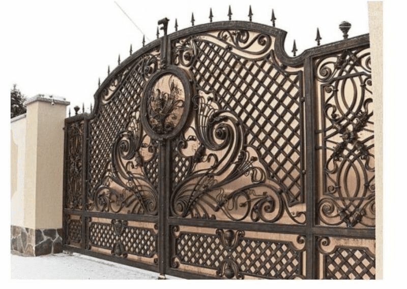 - Заборы, ворота и калитки. Они могут полностью быть коваными или содержать элементы ковки. Такое оформление заборов, ворот и калиток делает их долговечными. К тому же, они не прихотливы в обслуживании и не требуют такого постоянного ухода, например, не нуждаются в покраске. Харьковчане отмечают высокую стоимость таких конструкций. Но ее оправдывают преимущества готовых изделий и то, что это полностью ручная работа.