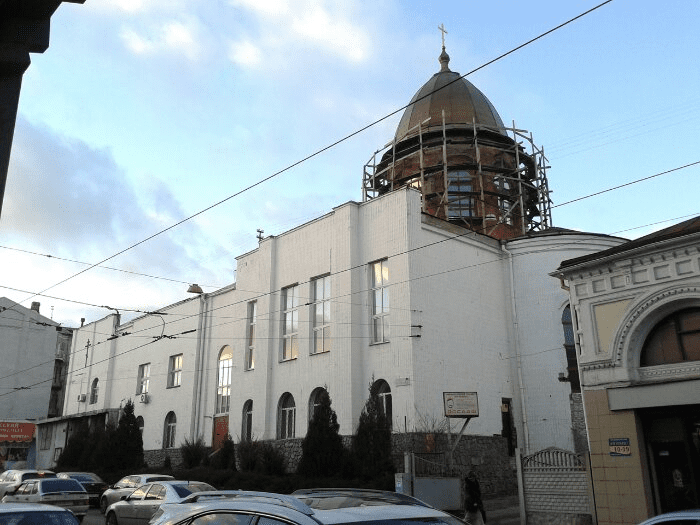 Уже в 1992 году в тогда ещё действовавшем кинотеатре прошло первое богослужение Украинской автокефальной православной церкви. 20 декабря этого же года храм посещает патриарх украинской автокефальной православной церкви Степан Иванович Скрипник, который благославляет постановление в иеродиаконы старосты общины монаха Игоря Исиченко. Уже через год благодаря Исиченко подобные богослужения стали проводиться на регулярной основе. Из-за чего со временем некоторые помещения церкви передавались общине. К сожалению все здания, так и не были отданы прихожанам. Приходскую школу и бывшую часовню занимают торговые точки.