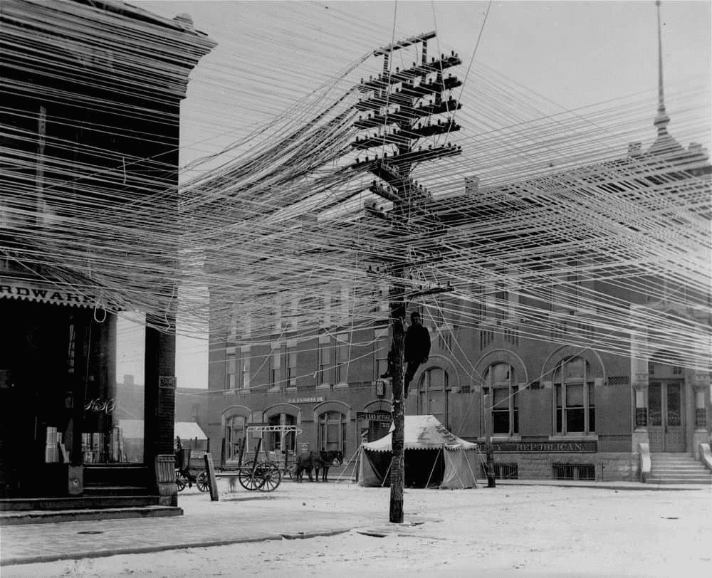 Процесс внедрения телефонной связи в Харькове получает свое материальное воплощение в здании на площади Фейербаха, где основывают первую местную телефонную станцию. Уже 25 октября 1888 года ее вводят в эксплуатацию – восемь магистральных линий, опоясавших город, определили площадь в Салтовском районе ядром телефонизации, словно центр паутины. Аналогия не случайна: система проводов, поглотившая Харьков, была многочисленной и простиралась не только в воздухе, но и специальными для нее водопроводными трубами.