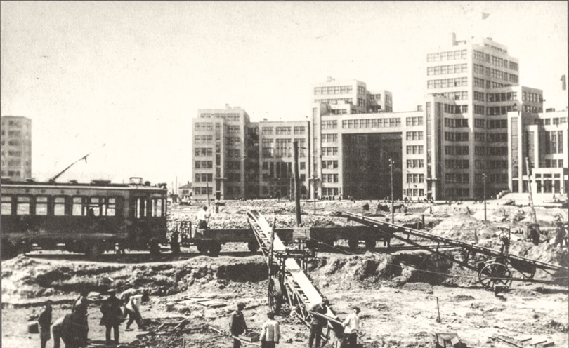 На будівництво Держпрому було проведено конкурс, який виграли архітектори Сергій Серафімов, Марк Фельгер та Самуїл Кравець. Головним інженером будівництва був Павло Роттерт. До проєктування та будівництва була залучена величезна кількість професіоналів (архітекторів, інженерів та робітників), а процес зведення споруди виконували за допомогою ручної праці з мінімальною кількістю простих механізмів та інструментів. Детальну історію будівництва цієї споруди описано у книзі “Держпром” Е. Звоницького та О. Лейбфрейда.