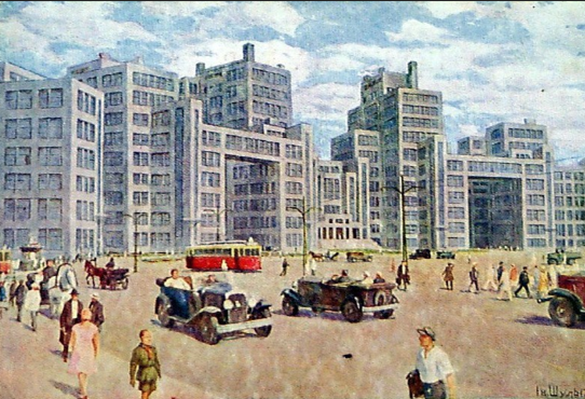 Будинок державної промисловості має цікаву історію. Його збудовано упродовж 1925 – 1928 років у Харкові, коли місто було столицею України (1919 – 1934 роки) за часів її перебування у складі Радянського Союзу. Це був перший 13-поверховий радянський хмарочос. Висота будівлі Держпрому становила 68 метрів, а після встановлення першої телевежі (1954 рік) сягає 108 метрів.