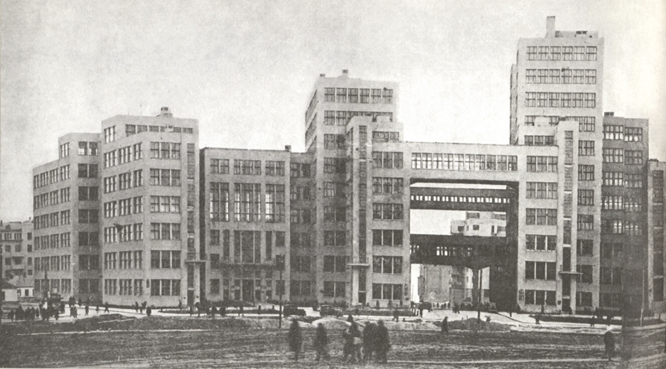 Територія під забудову була неосвоєною, що дало можливість для польоту фантазії. Автори проєкту намагалися створити масштабну інтернаціональну споруду без прикрас, де всі деталі підпорядковані тільки функціональному призначенню: експлуатація офісних приміщень вищими державними органами – аналогами до сучасних міністерств. Окрім офісів, будівля мала дві зали для засідань (на 1000 і 250 місць), їдальню, велику технічну бібліотеку, власну автоматичну телефонну станцію, архів, радіостанцію, поштово-телеграфну контору, пункт медичної допомоги, перукарню, готель і різні майстерні. Загалом комплекс Держпрому складається з трьох блоків із довгими корпусами. Кожний блок – це композиція об’ємів різної висоти. Площа всієї ділянки забудови склала 10760 м². Це була величезна праця близько 5 тисяч робітників.